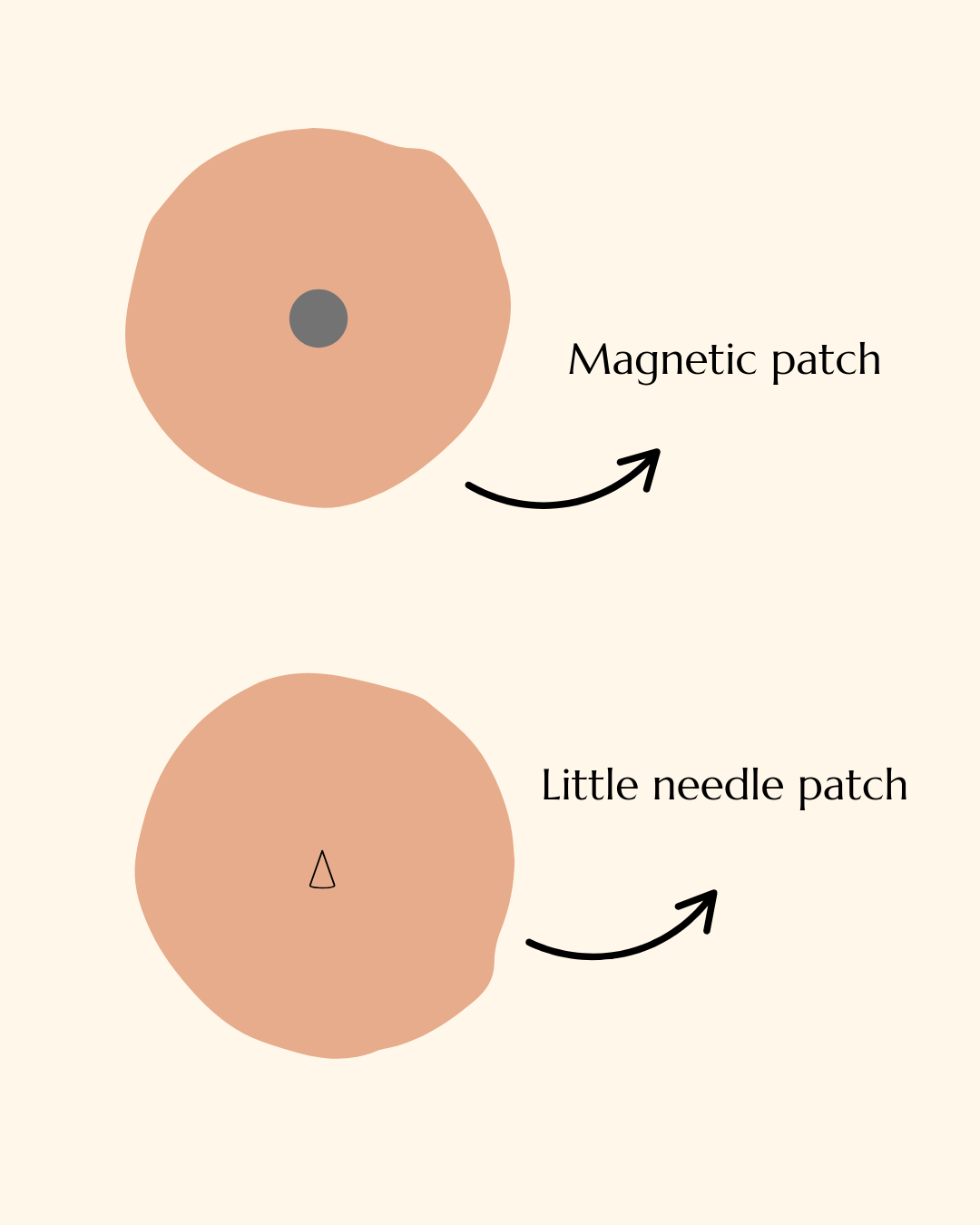 Instead of needles that penetrate the skin, we will use patches with magnets and a small needle that will activate specific points based on your needs.