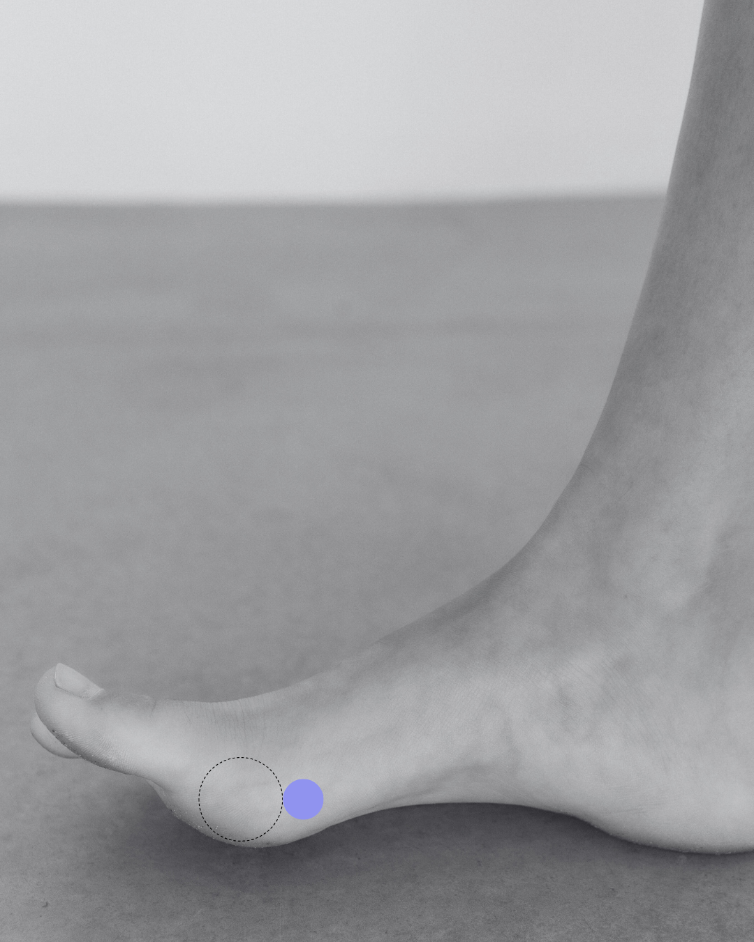 3.On the lateral side of the foot, move down from the bone, and right under it, you will find the point.